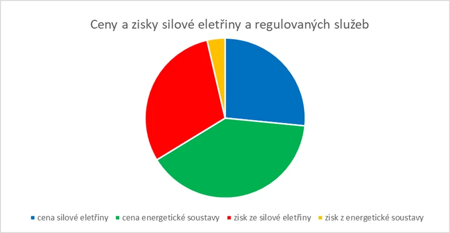 Obrázek 3 Rozdělení ceny a zisku z české elektřiny. Zatímco jádro pokrývá skoro polovinu našich potřeb, podílí se na ceně elektřiny minimálně.