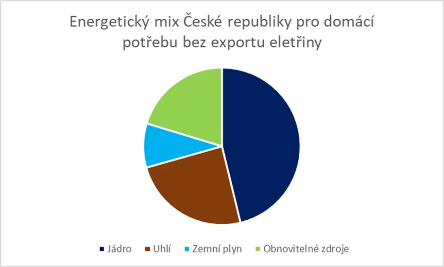 Obrázek 1 Energetický mix České republiky. Uhlí tvoří necelou čtvrtinu, ale než dostavíme jádro se bez něj neobejdeme, což potvrzují i současné výpočty státní sopečnosti ČEPS